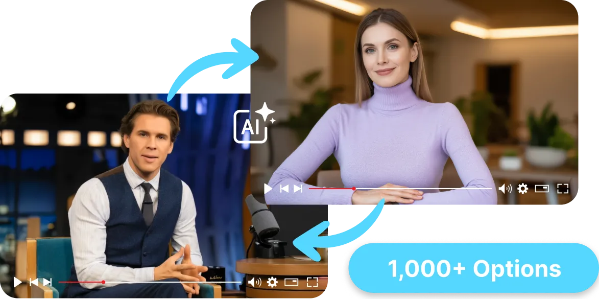 Choose from over 1,000 AI voices in every style, tone, and personality to match any project.
