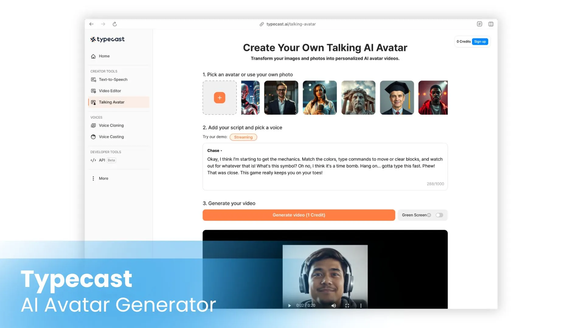 Typecast is an AI-powered content creation platform focused on generating realistic voices and expressive avatars. While best known as a text-to-speech tool, it also includes a talking avatar generator that lets users pair lifelike voices with facially animated characters. Typecast is widely used by content creators, educators, and marketers to produce voiceovers, video narrations, and short avatar-led clips without the need for recording equipment or professional voice actors.