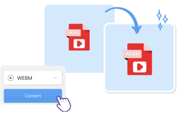 Easily and securely convert AVI to WEBM files online, for free.