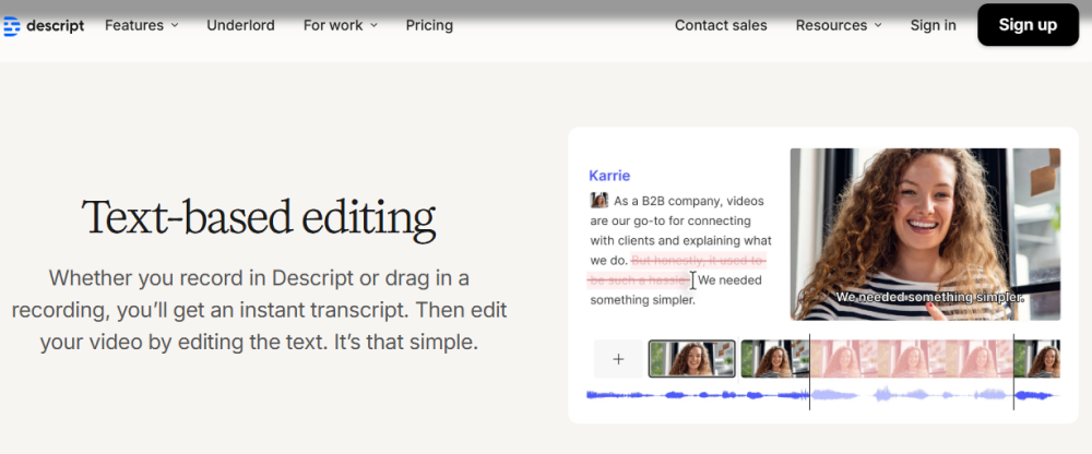 Descript lets you edit videos by simply editing text — ideal for creators who prefer precision control.