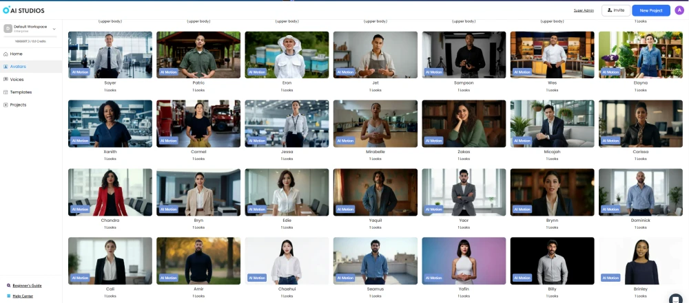 AI Studios lets you choose from 2,000+ avatars of different genders, ethnicities, and tones — all hyper-realistic.